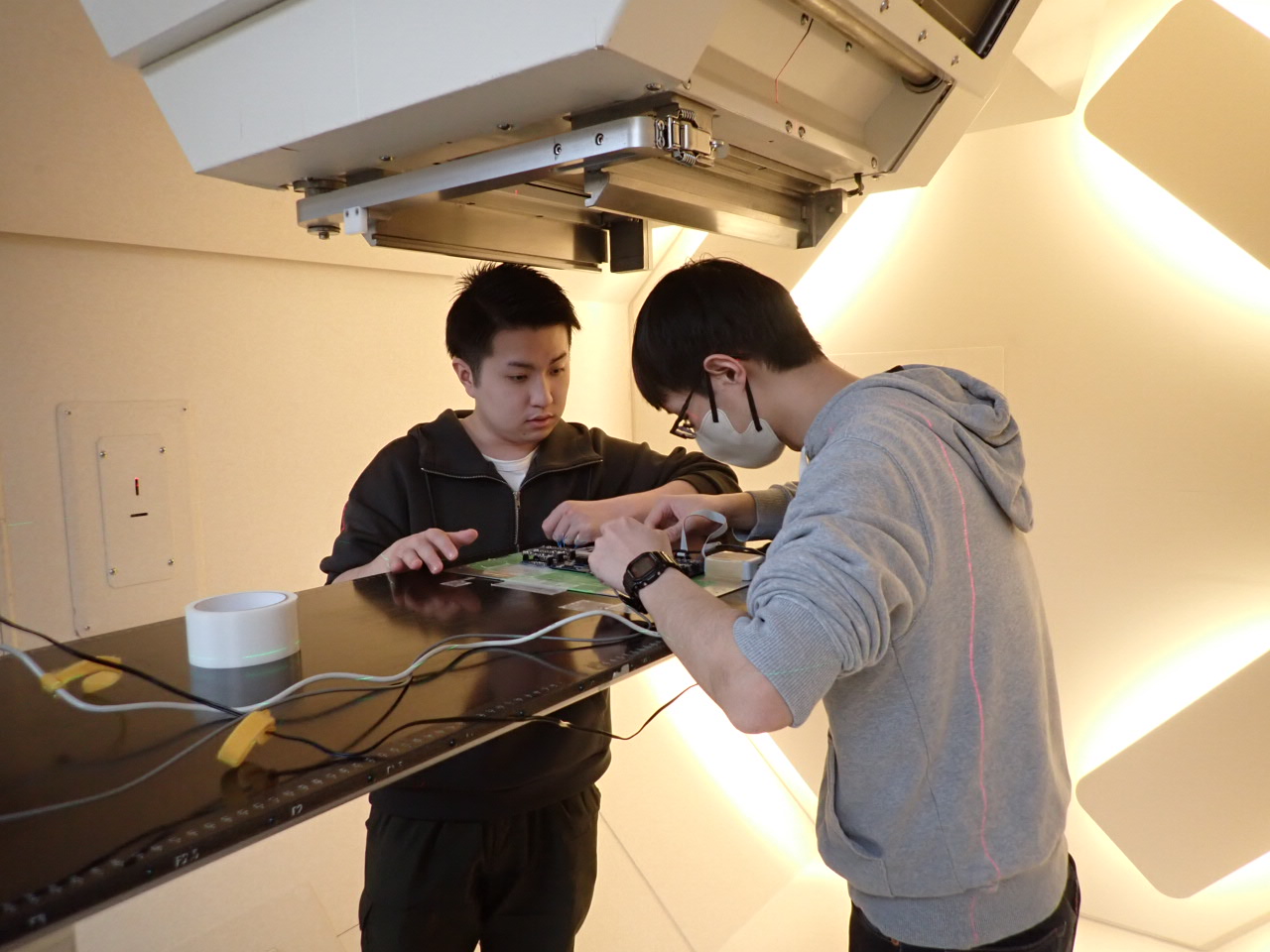 北海道大学病院 陽子線治療センターにおいて、NTT 宇宙環境エネルギー研究所の皆様と共同で、半導体の宇宙線陽子ソフトエラー対策実験を行いました。