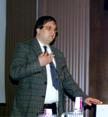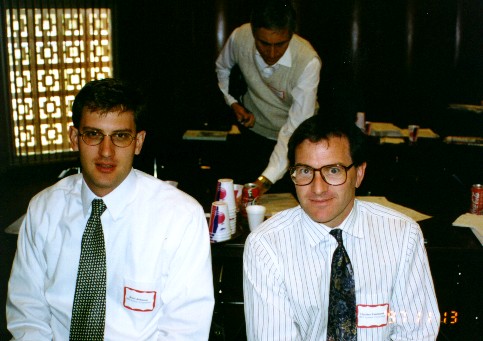 ':ダッシュというと思っていたけどプライムみたいだ。 fault sealingというのは断層が石油をトラップしていること。石油の採掘に伴って断層がずれたり、岩盤が損傷したりしてトラップが効かなくなり、石油が流出すると大変だ。断層の一方の側にクラックがたくさん発生したりいろんな現象があるらしい。 ジーンがやっているのはのこぎりで斜めに切った円柱形供試体をもう一度重ねあわせた封圧試験。角度の強度に対する影響ではなく、摸擬断層周辺の損傷とこれがfault sealingに与える影響に注目している。載荷軸と摸擬断層の角度が大きいと断層が滑るだけで、岩盤には損傷がないが、小さいと岩盤もかなり損傷する。 1日目はIce Breaker(懇親会)があった。ビールはグラスなしででてきて皆ラッパ飲みをする。ブルガリア出身の何とかいうビジティングの先生と一緒になった。彼はショーン・コネリーにそっくりだ。エネルギー関係の経済の先生で、色々と教えてもらった。 Coal Bed Methane(ミーセン)については、アメリカではすでに実用化されているらしい。図書館に行けば文献が一杯あるよといっていた。 ガスハイドレート(メタンガスが高圧低温化で水と一緒に凍った固まり)については、北海道の周りにも一杯あるよと教えてくれた。エネルギーとしては石油の100倍あるそうだ。問題は採掘方法が極めて困難なこと。石田先生が採掘方法を見つけたらショーンコネリーに電話することになっている。 ベネズエラには水より重いheavy oilというのがあるそうだ。これはサウジアラビアの石油の3倍。問題は、75%がタールであることと、硫黄が3%含まれていること。これも、石田先生が硫黄の処理方法を発明したらショーンコネリーに電話する手筈である。なお、specific gravity(比重量)だが、水は10oで石油(原油かもしれない)は32oだそうだ。Heavy Oil(重油ではない)は9o。軽くなるほど大きくなっているのだが、どんな単位だか見当もつかない。読み方はdegree。 ブルガリアの言語はBulgarian(ブルガリアン、ブルガリア語)。これはSlavicで、ポーランド語とかロシア語と似ていて、Slavicの言葉なら外国語でも話せはしないけど聞けば意味は分かるそうだ。日本の方言と同じようなものだろう。ビールはないけどワインは素晴らしいそうである。 ブルガリアの首都はSofia(辞典にはソウフィアと書いてあるがショーンコネリーはソフィアと発音)。 1997, 11/14 2日目はBanquetがイタリアンのビストロであった。6:30からなのだが皆バーにいてがんがん酒を飲んでいてさっぱり始まらない。本当に石田先生がいてくれて良かった。こんなところに1人でいたら30分くらいで耐えられないくらい疲労すると思う。当然煙草は吸えないし、車で来てるので(歩ける距離ではない)酒もほとんど飲めないし大変だ。 ようやく8:30頃にバンケット開始、メインが終わったあたりで私の発表があった。専門じゃない人もいるので、単位をできる限りpsi、ft等に変え、図面も可能な限りわかりやすくして準備しておいたものの、スクリーンは絵柄付きの壁で映りは良くない、マイクには雑音が入るは、ポインターの電池は途中で切れるはで普通なら大失敗のはずだ。ところが、実際は大爆笑のうちに無事終了した。 豊浜の話しだし、私はまじめにやったつもりなのだが、たとえば、最初に Thank you Dr. Roegiers, ladies and gentlemen. This is my first time to present in such situation like this. I try to make it as short as possible. So please pay attention to me.とまじめにただいったのだが、このplease pay attentionあたりで最初の爆笑が来る。たぶん、「なるべく短くすっから聞いてちょうよ」みたいに聞こえるのだろう。 一々書くとあまりに長くなるが、たとえば、「ある目撃者が途中で引き返した」というあたりでも、Oh, he is wise!という叫びと爆笑、温度のグラフで右側の縦軸にoFを追加しておいて、This is your temperature. This is our temperature.とやったあたりではI love your temperature!と合いの手が入って、私がThank you very much!とやるとまた爆笑である。 最初は他の客もいるし、「ディナープレゼンテーションなんてそんなものできるか」などと思い大変ナーバスになっていたが、終わってみれば大変いい経験をさせてもらったと思う。皆で盛り上げてくれたという感じであった。 amen:エーメン granite:辞典によればグレニトだがMazenはグレナイトといっていた。 スカンク発見!詳細は省くが、夜中にずぶぬれになりながら洗濯物を持って家路を急いでいたところ、行く手を阻む変な動物を発見した。猫かと思ったが、そうではない。スカンクだ!と思ったときには彼(彼女?)はすでに戦闘体勢に入り毛を逆立てていた。まずい!と思い迂回しながら何とかやり過ごした。今となってみれば、スカンクのおならがどのくらい臭いのか試してみたかったような気もするが、やっぱり洗濯物に臭いが移ると大変なことになっていたかもしれず、無事にやり過ごせて良かったと思う。 Cat Fish(なまず)のフライを食べた。チカのフライみたいな感じでおいしか